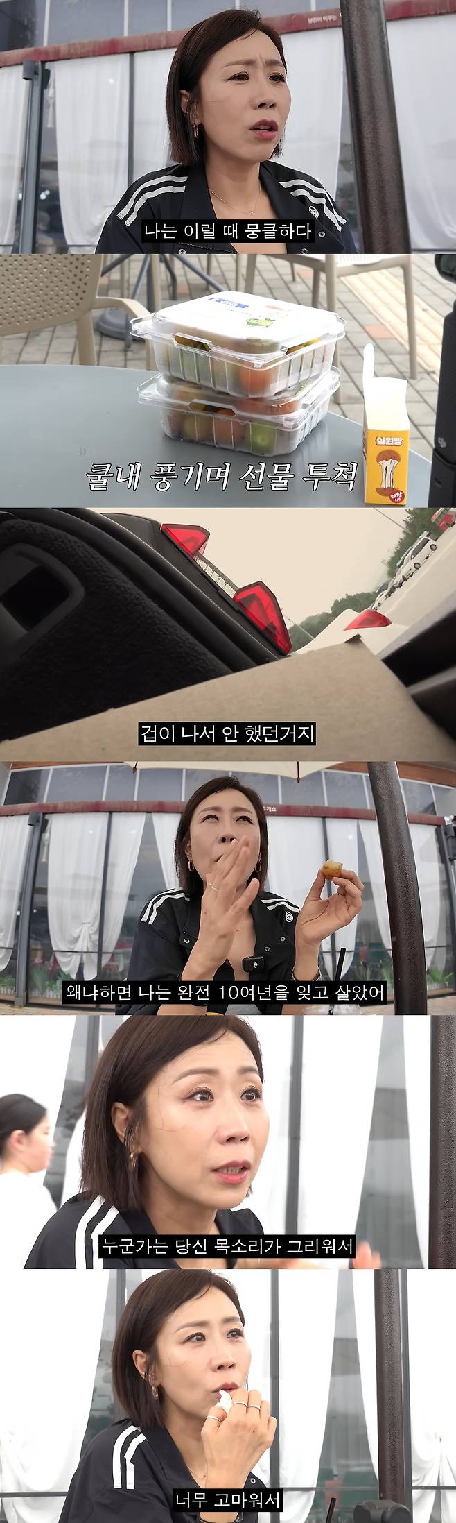 정선희는 휴게소 벤치에서 음식을 먹으며 "휴게소에서 오랜만에 먹어본다. 이렇게 휴게소에 앉아본 것도 처음이다. 폐쇄적이어서 음식을 사도 차 안에서 먹었다. 라디오 하기 전, 밥 먹을 시간이 1시간 있었다. 그러면 음식을 포장해서 차 안에서 먹었다. 차는 나의 아지트였다. 지금은 없는데 차 안에 미니 식탁도 있었다"라며 상황이 생소하다고 전했다.
