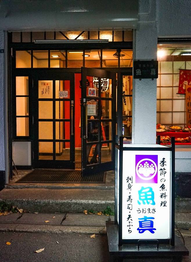 오타루에서 스시 먹기 좋은 곳으로 알려진 우오마사는 오타루 앞바다에서 잡은 제철 생선을 활용하며, 3,000~4,000엔(약 3~4만원)이라는 합리적인 가격에 다양한 어종의 스시(흰살생선·참치·어패류·새우·우니·오징어 등)를 받아볼 수 있다.