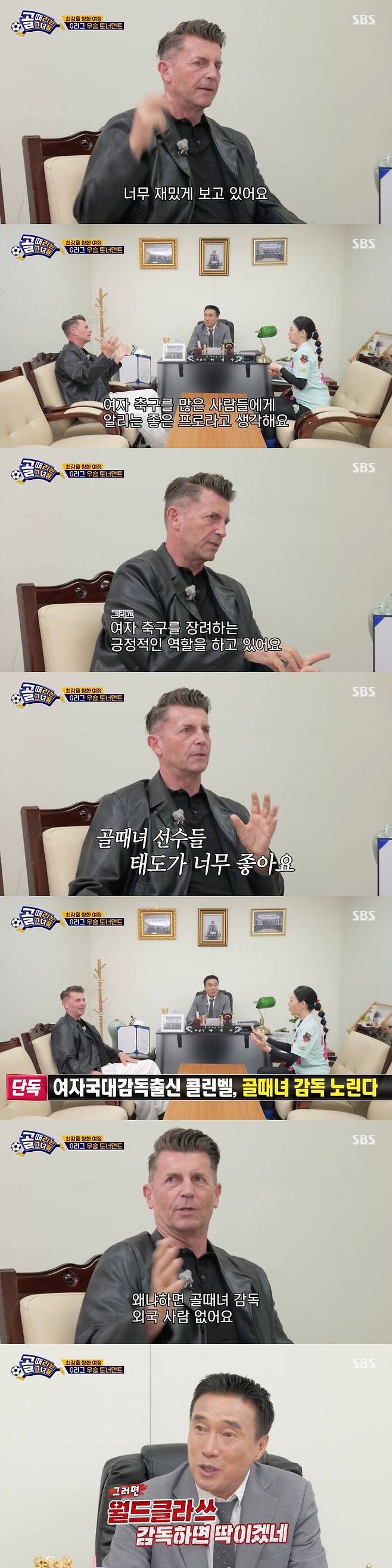 9일 방송된 SBS '골 때리는 그녀들'(이하 '골때녀')에서는 여자 축구 국가대표 감독 출신인 콜린 벨이 하석주 위원장을 찾았다.