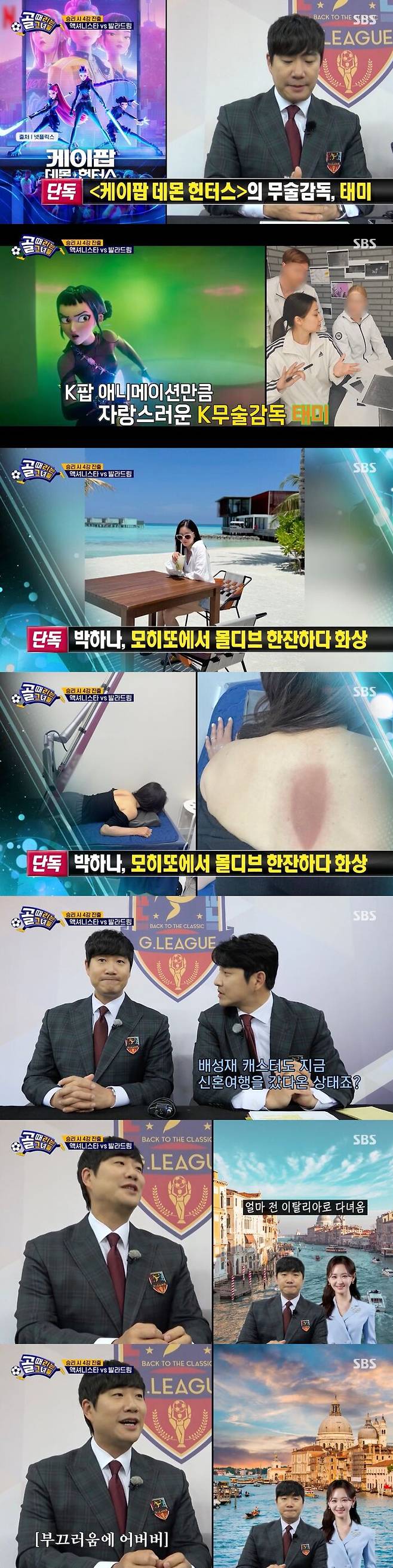 이에 박주호는 "배성재 캐스터님도 신혼여행을 다녀오지 않았냐? 어땠냐?'라고 물었다. 앞서 배성재는 아내 김다영과 이탈리아로 신혼여행을 다녀온 것.