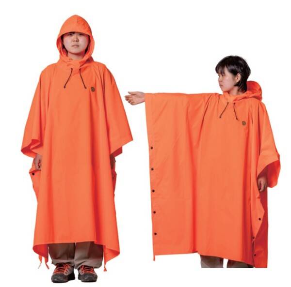 튼튼한 재질의 내구성이 강한 판초우의다. 다소 무게와 부피가 커서 부담스러울 수 있다. 우의 앞쪽에는 지퍼와 버튼으로 이중 설계되어 있으며 조임끈으로 모자 사이즈가 조절 가능하다. 배 쪽에 있는 캥거루 포켓을 뒤집어 패킹 주머니로 사용 가능하다.