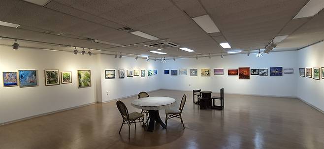 | ▲ 참살이미술관 전시 풍경 100여점의 작품이 전시를 시작하고 있다. |