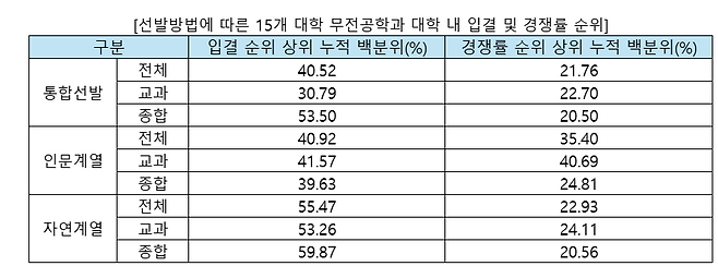 ◆계열 구분보다 통합선발 경쟁률·입결 높아