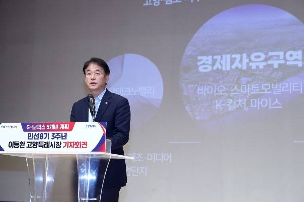 | ▲ 이동환 고양특례시장이 '민선8기 취임 3주년 기자간담회'를 갖고 'G-노믹스 5개년 계획'을 발표했다. |