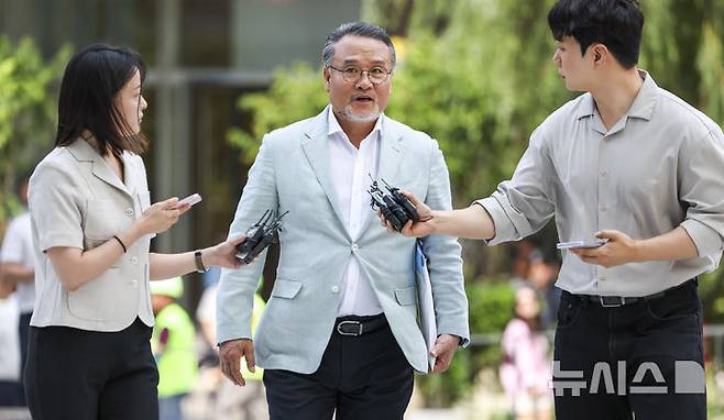 [서울=뉴시스] 조성우 기자 = 이일준 삼부토건 회장이 10일 오전 서울 종로구 KT 광화문빌딩 웨스트에 마련된 김건희 여사 연루 의혹이 제기된 주가조작 사건을 조사하는 민중기 특별검사팀 사무실로 출석하고 있다. 2025.07.10. xconfind@newsis.com