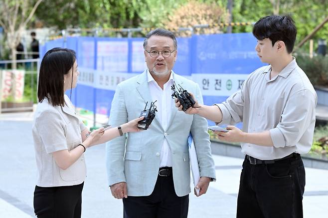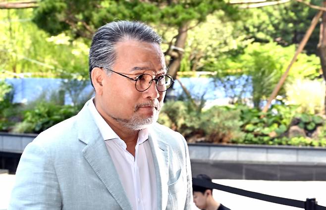 이일준 삼부토건 회장이 10일 서울 종로구 KT광화문빌딩 웨스트에 마련된 김건희 여사 관련 의혹을 수사하는 민중기 특별검사팀 사무실에 조사를 받기 위해 출석하고 있다.