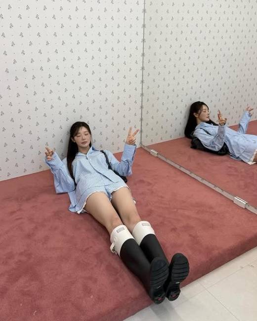 공개된 사진 속 이시안은 스트라이프 패턴의 루즈핏 셔츠에 같은 패턴의 쇼츠를 매치해 청량하고 경쾌한 분위기를 완성했다. 여유로운 실루엣의 셔츠는 은은한 파스텔 톤의 스트라이프로 이시안 특유의 청순한 비주얼을 더욱 돋보이게 했다.