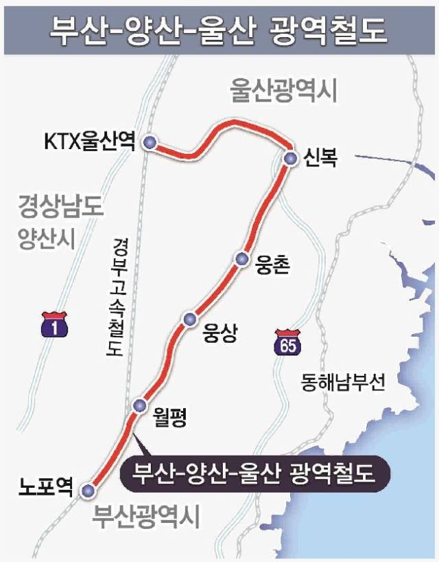 부울경 핵심축인 부산(노포)~양산(웅상)~울산(KTX 울산역)을 잇고 부산 1호선, 정관선, 양산선, 울산 1호선 등 단절된 4개의 도시철도와 직접 연계된다. 부울경 1시간 생활권을 형성하고 산업·물류·배후단지 기능을 활성화해 지방 균형발전을 견인할 것으로 기대된다.