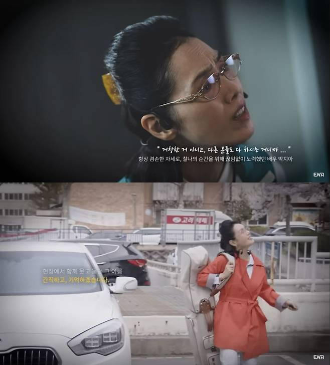 영상에는 고 박지아의 과거 활동 모습이 담겼다. 고인이 과거 시상식에서 한 말, 방송에 출연해 한 이야기들을 자막으로 담았다.