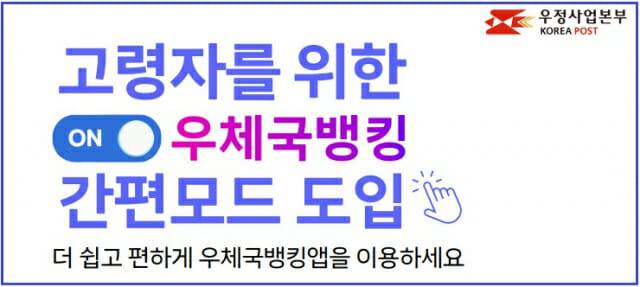 조해근 우정사업본부장은 "고령층 등 디지털 소외 계층을 위한 사회적 관심과 수요가 지속적으로 확대되고 있어 간편모드를 도입하게 됐다"며 "앞으로도 누구나 편리하게 금융서비스를 이용할 수 있도록 사용자 중심의 서비스 제공에 지속적으로 노력하겠다"고 말했다.