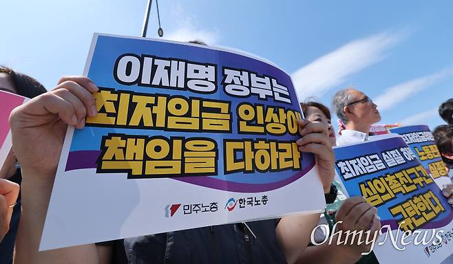 [오마이포토] "이재명정부는 최저임금 인상 책임 다 하라"