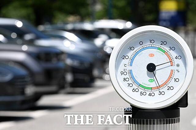 '40도 훌쩍' 폭염에 끓어오르는 야외주차장 [TF사진관]