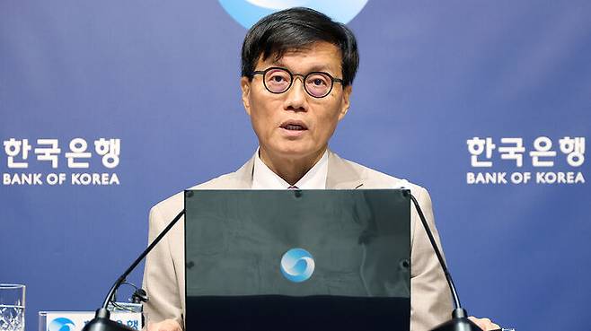 ▲ 이창용 한국은행 총재가 10일 서울 중구 한국은행에서 열린 금융통화위원회 금리 결정에 대한 기자간담회에서 발언하고 있다.