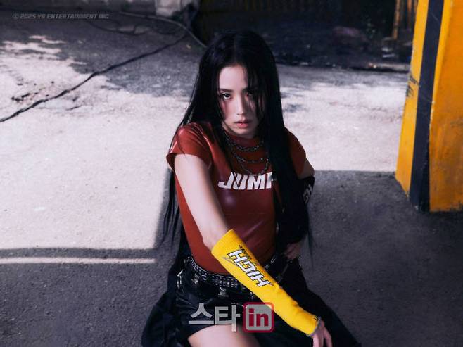 골목을 배경삼아 찍은 단체 사진에는 '점프'(JUMP) 문구가 새겨진 각기 다른 색상의 라텍스 소재 의상을 입은 멤버들의 모습이 담겼다.