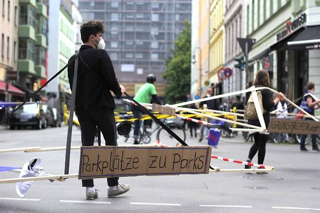 | ▲ '주차장을 공원으로'라는 팻말을 들고 시위하는 베를린 시민들 |