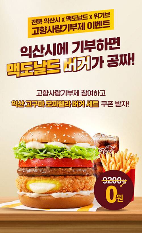 익산시, 맥도날드 '고구마 버거' 출시 고향사랑 기부제 이벤트