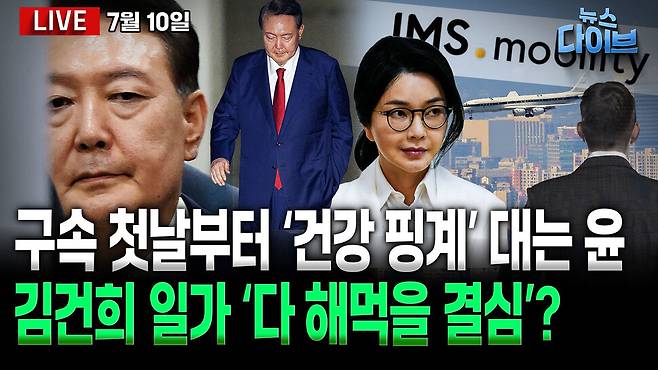 '머그샷' 찍은 윤석열, 내란 재판 첫 날부터 불참...이유는 '건강 이상'? / 내란 수괴의 '화려한 휴가' 끝...윤석열, 에어컨 없는 '3평 독방' 이제 유튜브 못본다 / '다 해먹을 결심' 김건희 일가...도대체 어디까지 해먹었나! / 대선 이후의 권영국, 그가 말하는 진보정당의 현재와 미래! 오늘 (7월 10일) 뉴스 다이브 많은 시청바랍니다.