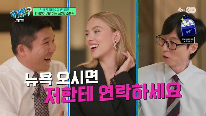 7월 9일 방송된 tvN <유 퀴즈 온 더 블럭>에서는 한국인들이 사랑한 할리우드 배우 스칼릿 조핸슨이 출연했다.