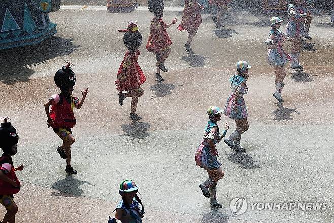 (용인=연합뉴스) 홍기원 기자 = 폭염이 이어지고 있는 10일 경기도 용인시 에버랜드에서 '슈팅 워터 펀 시즌2' 공연이 펼쳐지고 있다. 2025.7.10
