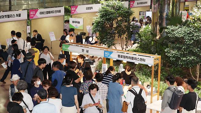 올해 박람회에는 서머셋팰리스 서울, 이비스앰배서더 인사동, 쿠팡, 한국야쿠르트 등 7개 업종 10개 구인 기업과 4개 기관이 함께한다. 총 174명에게 면접 기회를 제공할 계획이다. 구인 기업뿐만 아니라 유관기관과도 협력해 다양한 취업 지원 서비스를 제공하고, 전 연령층을 위한 특강을 병행해 세대를 아우르는 공감대를 형성할 예정이다. 박람회는 ‘1:1 현장 면접·채용’, ‘취업 상담·일자리 정보 제공’과 ‘이력서 사진 촬영’, ‘지문적성검사’, ‘퍼스널 컬러 진단’ 등으로 구성했다.