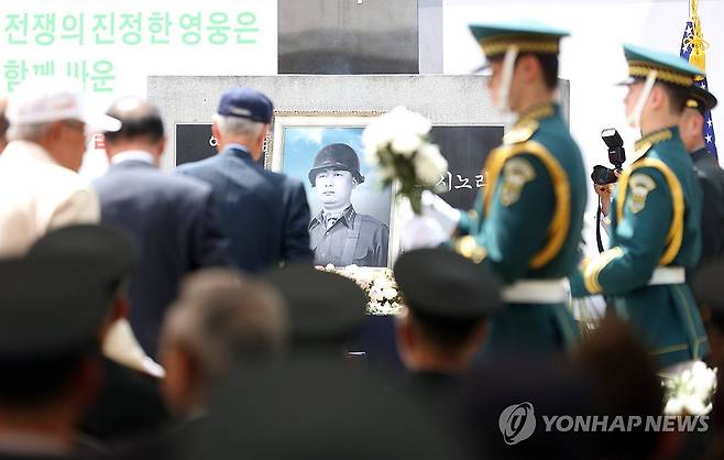 (칠곡=연합뉴스) 김현태 기자 = 10일 경북 칠곡군 다부동전적기념관에서 고(故) 백선엽 장군 5주기 추모식이 엄수되고 있다. 2025.7.10