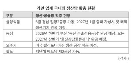 'K라면 더 타오른다'..삼양·농심·오뚜기·팔도, '생산늘리기' 글로벌 경쟁
