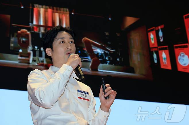 (서울=뉴스1) 박정호 기자 = 노승준 로브로스 대표가 10일 서울 여의도 한국거래소 컨퍼런스홀에서 'AI 휴머노이드, 인간과 기계의 공존 시대'를 주제로 열린 2025 뉴스1 테크포럼(NTF)에서 'AI 휴머노이드는 어디서 일하는가: 연구실부터 물류센터까지'를 주제로 AI 휴머노이드 스타트업의 시장개척 등 사례를 발표하고 있다. 2025.7.10/뉴스1