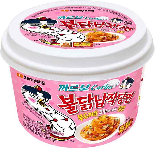 오늘(10일) 업계에 따르면 삼양식품은 '불닭' 소스에 크림을 추가한 대표적 인기 제품인 '까르보불닭'의 풍미를 담은 신제품 '까르보불닭 납작당면'을 출시했습니다.