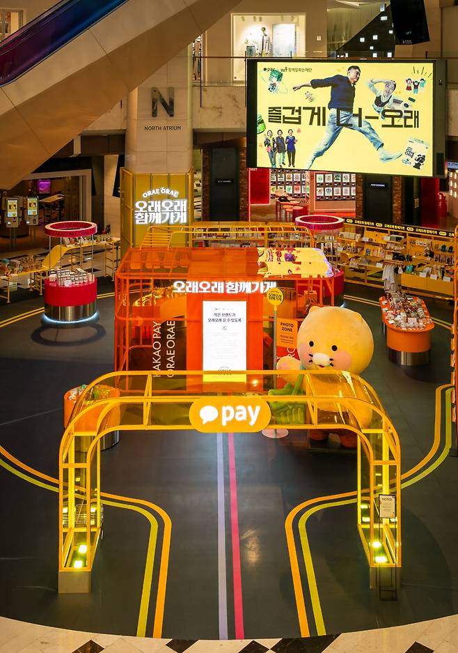 현장 이벤트와 마케팅 프로모션 지원도 이어간다. 팝업스토어에서 사용할 수 있는 상품권을 증정하는 스톱워치 게임, 포토 부스, 직접 만들어보는 키링 챌린지 등 방문객이라면 누구나 다양한 이벤트를 체험할 수 있다. 카카오페이로 1만원 이상 구매 시 럭키드로우, 5만원 이상 구매 시 '오래오래 함께가게' 전용 상품권을 뽑을 수 있는 럭키캐치 이용권 등을 제공하는 구매 이벤트도 진행된다.