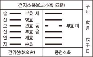 점사에서 입서해 상구의 때<<※각주=하락이수(河洛理數), 상구는 성(盛)한 위태로움을 밟는 자이다(是履盛之危者也/시리성지위자야). 고로 협자(叶者)는 귀하나 위가 없고 높은 데 있으나 이름이 없다. 능히 겸손하고 경계한 즉 부귀를 길게 지킬 수 있다(貴而無位 高而無名 能知謙戒 則可長守其富貴/귀이무위 고이무명 능지겸계 즉가장수기부귀). 불협자(不叶者)는 스스로 높이고 스스로 크게 여기며 공(公)을 속이고 법을 희롱하며 탈을 부르고 죄를 인도해 성립하기 어렵다(自尊自大 欺公玩法 招尤啓釁 難于成立/자존자대 기공완법 초우계흔 난우성립/釁 피바를 흔). 만약 여명이라면 성품이 반드시 사나워서 내조가 어렵다(若是女命 其性必悍 內助艱辛/약시여명 기성필한 내조간신/悍 사나울, 성날 한).
