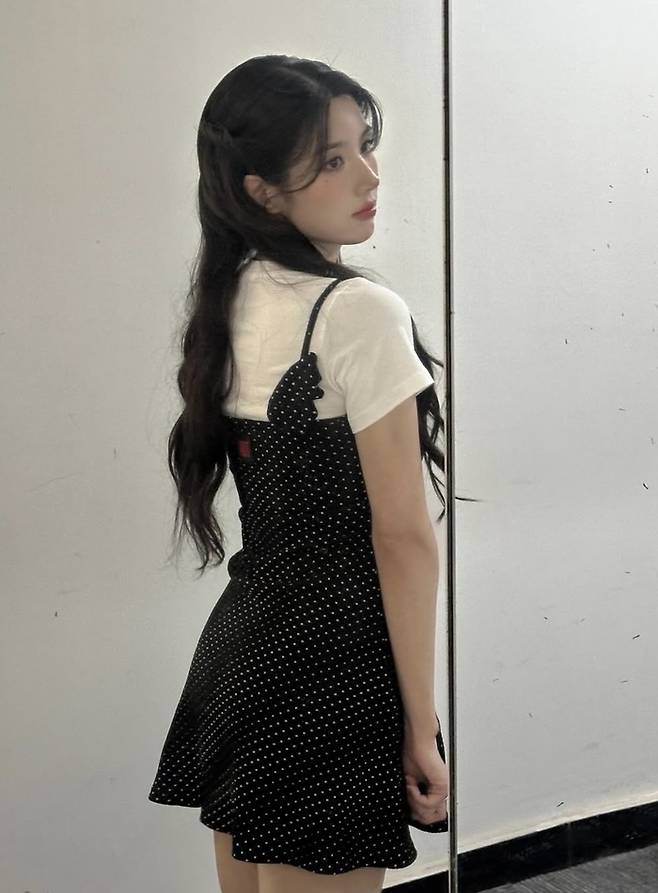 공개된 사진 속 권은비는 흰색 반팔 티셔츠 위에 도트 무늬가 수놓인는 블랙 슬립 원피스를 레이어드해 상큼하면서도 발랄한 매력을 발산했다. 길게 늘어뜨린 웨이브 헤어는 그녀의 청순하면서도 여성스러운 분위기를 한층 더 강조했다.