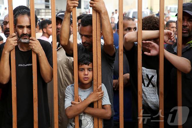 (칸 유니스 로이터=뉴스1) 권영미 기자 = 10일(현지시간) 이스라엘의 가자지구 칸 유니스 야간 공습에 숨진 팔레스타인인들의 장례식에서 사람들이 애도하고 있다. 2025.07.10.