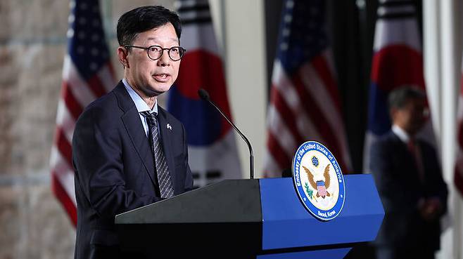 ▲ 박윤주 외교부 1차관이 7월 2일 서울 용산구 그랜드 하얏트 호텔에서 열린 미국 독립기념일 행사에서 축사하고 있다.