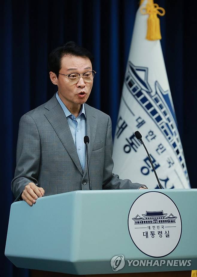 (서울=연합뉴스) 홍해인 기자 = 이규연 대통령실 홍보소통수석이 10일 서울 용산 대통령실 청사에서 이날 열린 수석·보좌관 회의 등 현안 브리핑을 하고 있다. 2025.7.10 [대통령실통신사진기자단]