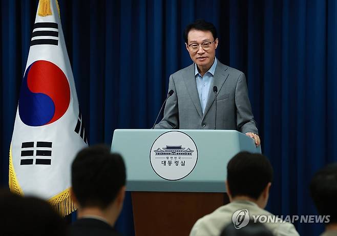 (서울=연합뉴스) 홍해인 기자 = 이규연 대통령실 홍보소통수석이 10일 서울 용산 대통령실 청사에서 이날 열린 수석·보좌관 회의 등 현안 브리핑을 하고 있다. 2025.7.10 [대통령실통신사진기자단]