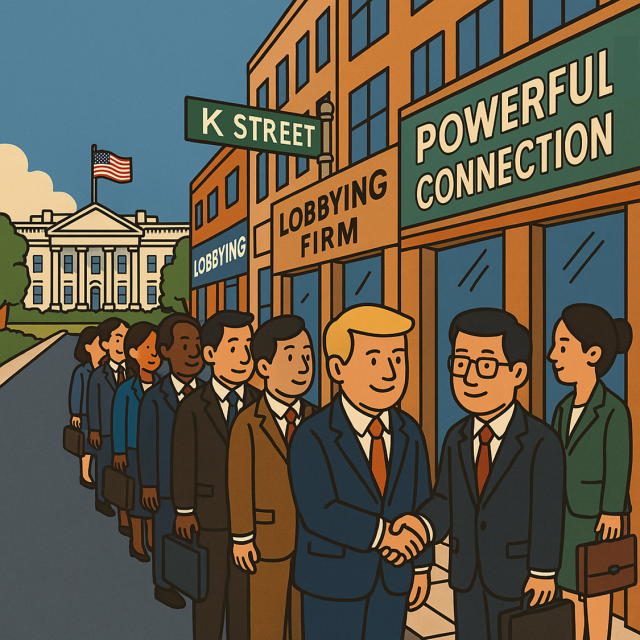 9일(현지 시간) 미국 워싱턴 DC 백악관에서 북쪽으로 세 블록 떨어진 거리. 일명 ‘K스트리트’라고 불리는 길이 6.4㎞의 거리에는 30도를 훌쩍 넘는 더위에도 오피스 종사자들이 거리를 오가며 분주한 모습이었다. 유명 로비 업체들과 로펌, 컨설팅 기업들이 밀집해 ‘세계 최대 로비 시장’으로 불리는 일명 ‘로비의 월스트리트’인 셈이다. 세계 최고의 정보와 인맥이 모인다는 K스트리트는 ‘미국 우선주의’를 내세운 도널드 트럼프 2기 행정부 출범과 함께 황금시대를 맞이하고 있다. 워싱턴에서 활동하는 로비단체의 한 관계자는 “미국 정부가 관세 등으로 압박하고 있는 상황인 만큼 외국 정부 및 기업들의 로비스트에 대한 수요가 매우 높다”고 분위기를 전했다.