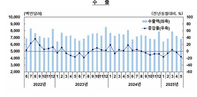 먼저 수출의 경우 유류(-25.2%)와 자동차(-17.8%), 선박(-15.9%) 등의 감소폭이 컸고, 수입은 유류(-25.3%), 철강(-18.5%), 정광(-14.8%) 등이 감소를 주도했다. 자동차와 철강은 미국이 조치한 품목관세(25%) 대상이다.