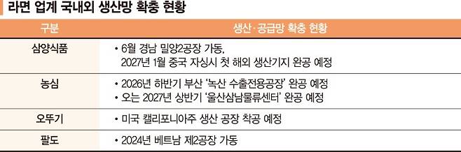 K라면의 글로벌 흥행에 힘입어 국내 라면업계가 국내외 공급망 확충에 가속화를 내고 있다.