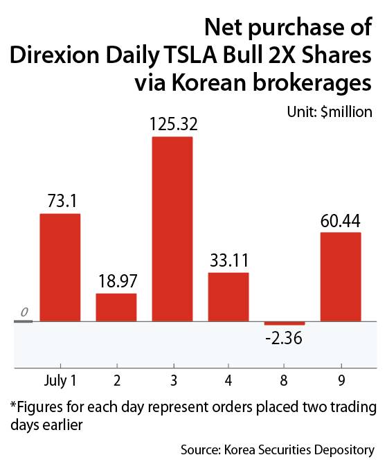 Korean investors on the day placed orders for $136 million worth of TSLL, and $146.9 million of Tesla.