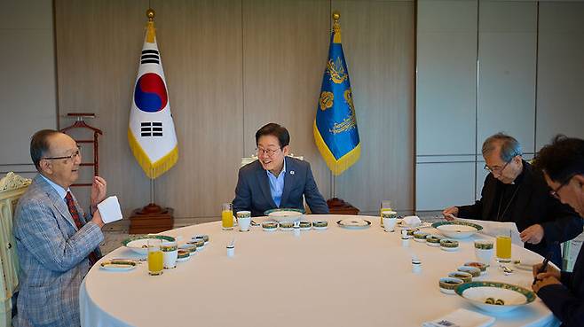 이재명 대통령이 시민사회 원로인 함세웅 신부, 백낙청 교수와 오찬을 하면서 국정운영에 대한 조언을 들었습니다.