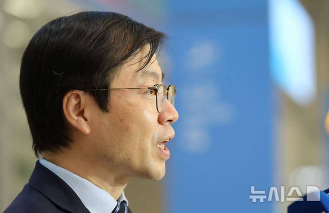 [인천공항=뉴시스] 권창회 기자 = 미국 트럼프 행정부와 통상 협상을 위해 출국했던 여한구 산업통상자원부 통상교섭본부장이 10일 인천국제공항 제2터미널을 통해 귀국해 취재진 질의에 답하고 있다. 2025.07.10. kch0523@newsis.com