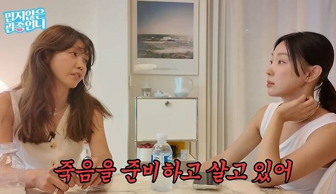 이날 이지혜는 자신을 버티게 해준 채정아의 미담을 전하며 "지금 언니의 삶에 만족하냐"라며 "언니가 싱글라이프를 택한 거 아니냐"라고 물었다. 이에 채정안은 "너처럼 잘 살 자신이 없는데?"라며 "너무 잘 살려고 애쓰면서 살고 싶지 않아"라고 답했다.