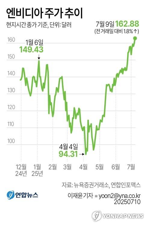 이날 엔비디아 주가는 전날보다 1.8% 오른 162.88달러에 거래를 마쳤다.