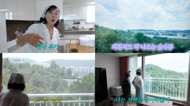 [OSEN=박근희 기자] 최화정이 50년 만에 독립한 송은이의 '숲속뷰' 아파트를 방문, 푸른 숲속 뷰에 감탄했다.