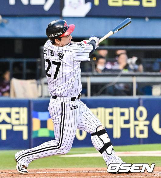 4회말 LG 선두타자 박동원이 2루타를 날리고 있다. 2025.07.10 / soul1014@osen.co.kr