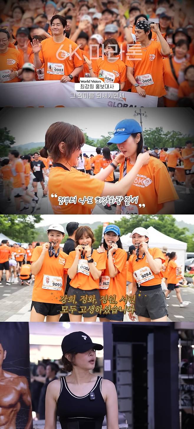 6km 완주에 성공한 최강희는 "옛날부터 '나도 최강희'랑 같이 월드비전 (마라톤에) 와보고 싶었다. 같이 와서 너무너무 기쁘다"라며 소감을 전했다.