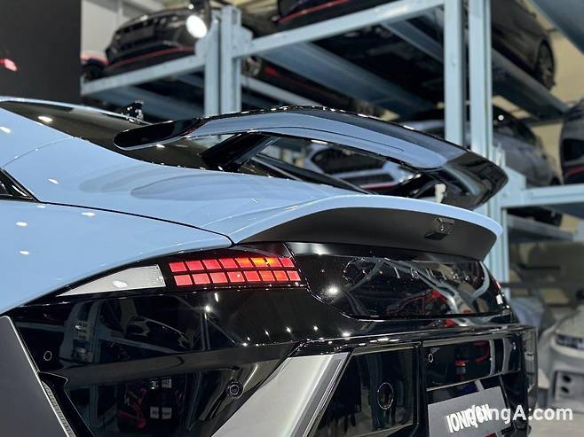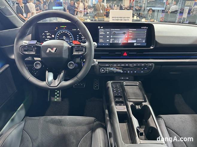 프런트·리어 범퍼 하단, 사이드 하단 등에는 블랙 하이글로시 색상이 넓게 적용돼 날렵하고 강인한 이미지를 극대화했다. 실제로 넓어진 전폭과 짧아진 오버행, 확장된 휠베이스는 N 라인 모델과는 확연히 달랐다. 이를 통해 고성능 전기차 존재감을 명확히 드러낸 셈이다.