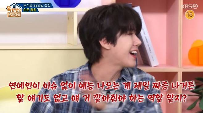 광희는 "이준을 신경 썼냐"는 질문에 "썼죠. 이준 때문에 제가 온 거다"라고 답했다. 김종국이 "넌 다른 목적 없이 나온 거냐"라고 묻자 광희는 "네. 짜증 나게"라고 발끈하며 "연예인이 이슈 없이 예능 나오는 게 제일 짜증 나거든. 할 얘기도 없고 얘 거 깔아줘야 하는 역할 알지"라고 분노해 웃음을 안겼다. 반면 이준은 "전 편안한 마음으로 나왔다"라고 밝혔다.