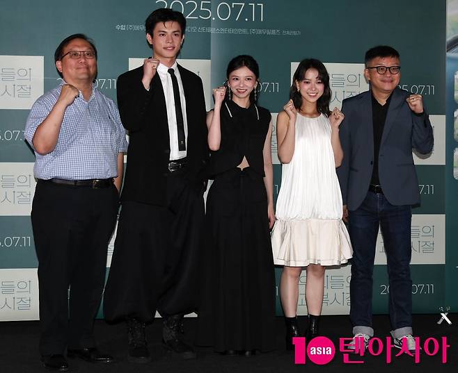 촹칭션 감독, 진연비, 항첩여, 구이태, 당재양 프로듀서가 10일 서울 용산구 CGV 용산아이파크몰에서 열린 대만 영화 <우리들의 교복시절> 언론시사회에 참석하고 있다. 우리들의>