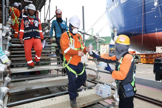 또 오는 8월 말까지 폭염에 취약한 작업장에 얼음생수를 공급하고, 식당과 휴게소 등에서 지급하는 얼음생수 또한 크게 늘렸다. 한화오션은 지난해 178만개의 얼음생수를 지급했다.